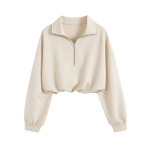 The HHARRIET™ – Casual Half Zip Pullover is designed for effortless everyday wear with a clean, contemporary feel. Featuring a stand collar neckline, adjustable drawstring hem, and a relaxed cropped shape, this piece offers comfort while keeping your look polished and current.