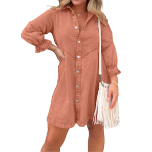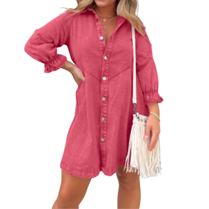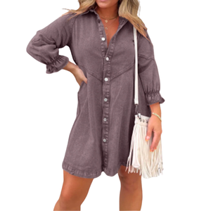 The RENEE™ Stylish Puff Sleeve Mini Dress blends effortless structure with playful detailing. Designed with soft puff sleeves and a flattering mini length, this dress creates a balanced silhouette that feels both relaxed and refined. The button front detail adds a classic finish, making it a versatile piece for everyday styling with a touch of personality.